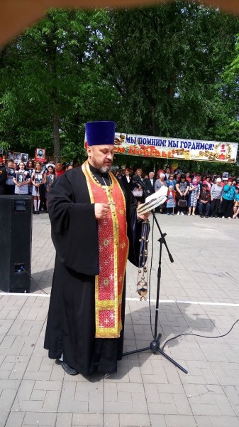Настоятель храма святителя Тихона Задонского станицы Кривянской протоирей Анатолий Почтовый, принял участие в праздничных мероприятиях посвященных Дню Победы.