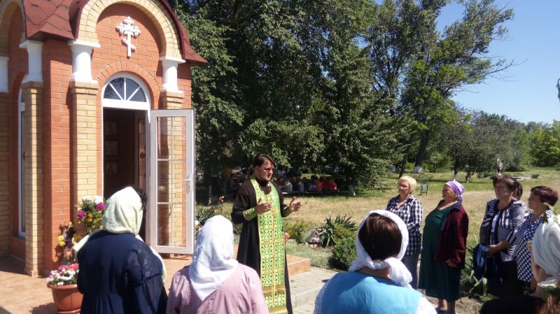 В день святой Троицы в хуторе Веселая Бахмутовка Октябрьского района возле часовни в честь Пресвятой Троицы состоялся праздничный молебен.