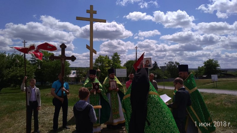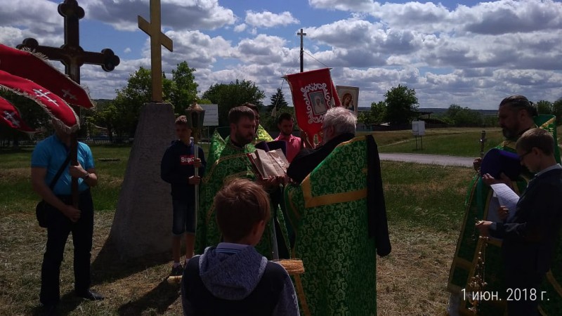 После праздничного богослужения был совершен традиционный Крестный ход к Поклонному Кресту расположенному при въезде в п.Нижнедонской.
