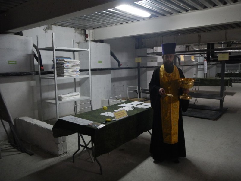 Затем священники окропили святой водой новые помещения и места расположения личного состава.