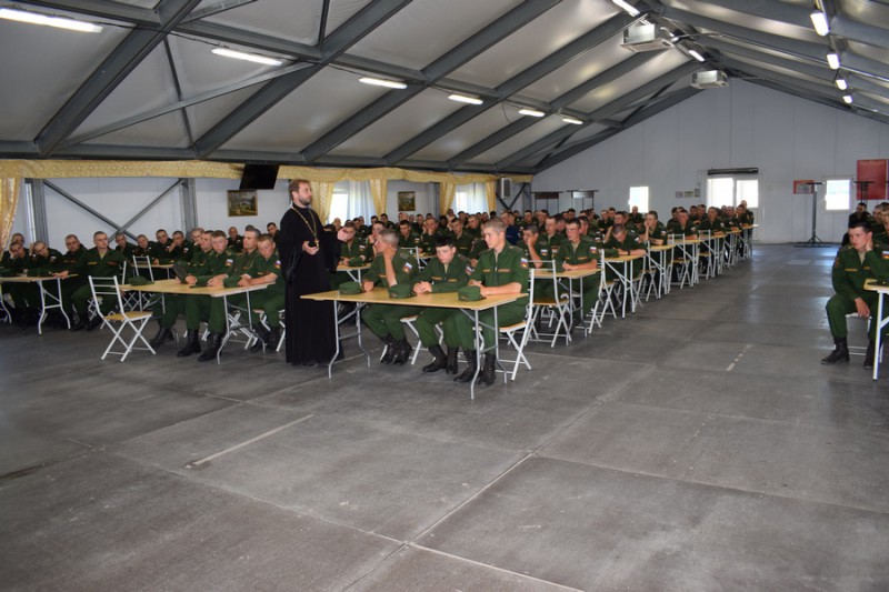 По приглашению командования благочинный приходов Нижнедонского округа протоиерей Сергий Яценко посетил 102-й мотострелковый полк 150-й Идрицко-Берлинской ордена Кутузова дивизии 8-й гвардейской общевойсковой армии Южного военного округа и провел с военнослужащими беседу об основах веры.