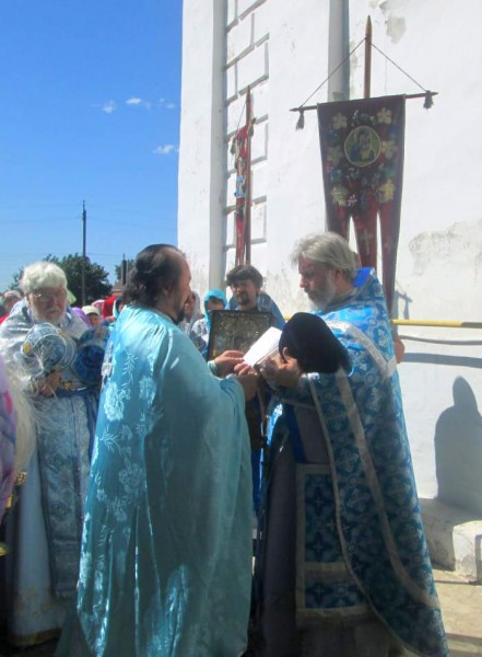 После службы прошел традиционный Крестный ход и священник поздравил молящихся с Престольным праздником.