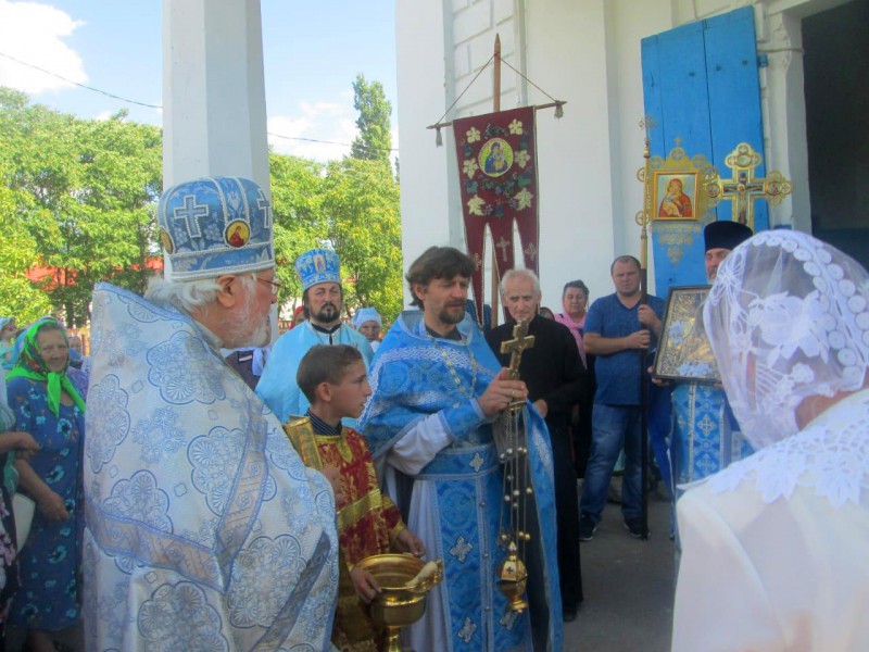 После службы прошел традиционный Крестный ход и священник поздравил молящихся с Престольным праздником.