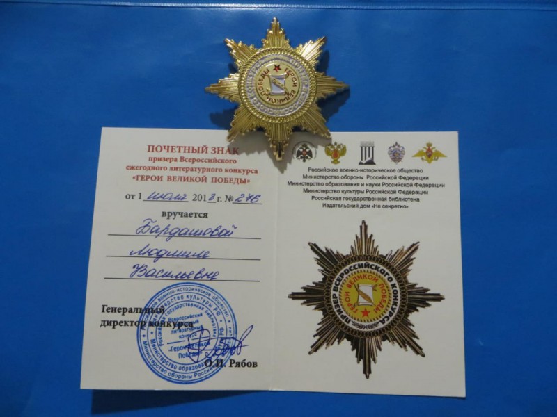 Священник поблагодарил Людмилу Владимировну за ее труд в деле духовно-нравственного и гражданско-патриотического воспитания детей и поздравил с одной из заслуженных наград, с вручением почетного знака ежегодного Всероссийского литературного конкурса «Герои Великой победы».