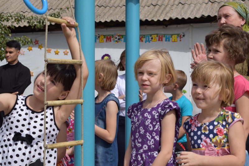 В день прославления Владимирской иконы Божией Матери, на территории храма Архангела Михаила п. Каменоломни Октябрьского района Нижнедонского благочиния для местных жителей, маленьких прихожан и воспитанников церковно-приходской воскресной школы «Благовест» состоялось открытие и освящение детской игровой площадки «Территория добра и творчества».