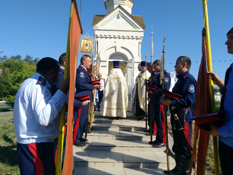 Возле Часовни, освященной в память о Чуде Архангела Михаила бывшего в Хонех, благочинный приходов Нижнедонского округа протоиерей Сергий Яценко в сослужении собора духовенства совершил молебен предводителю воинства Небесного Архангелу Михаилу и обратился к молящимся к пастырским словом.