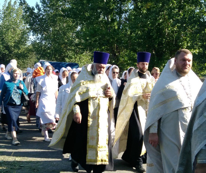 После соборного праздничного богослужения в храме Архистратига Михаила и прочих Небесных Сил бесплотных п. Каменоломни Октябрьского района, состоялся традиционный Крестный ход к Часовне расположенной при въезде в п. Каменоломни.