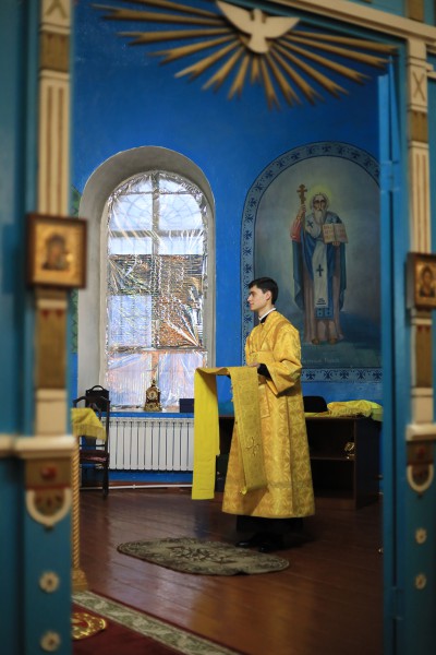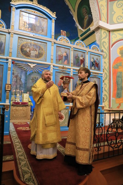 Священник Андрей перед причастием обратился к прихожанам с проповедью.