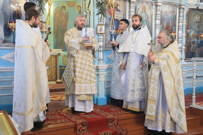 В этот день архипастырю сослужили благочинный приходов Нижнедонского округа, настоятель храма протоиерей Сергий Яценко, клирик храма праведного Иоанна Кронштадтского иерей Виталий Крендясов, клирик храма архистратига Михаила иерей Алексий Чумак, иеродиакон Флавиан (Васильев).