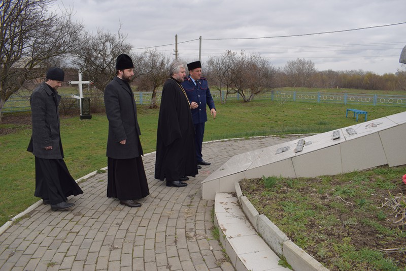 Епископ Шахтинский и Миллеровский Симон, секретарь епархии иерей Александр Теличкин, благочинный приходов Нижнедонского округа протоиерей Сергий Яценко, настоятель храма святителя Алексия Московского ст. Бессергеневской, глава Бессергеневской администрации – атаман станицы Бессергеневской Анатолий Михайлович Гудков и атаман хут. Калинин Сергей Семенов выехали на место планируемого строительства.