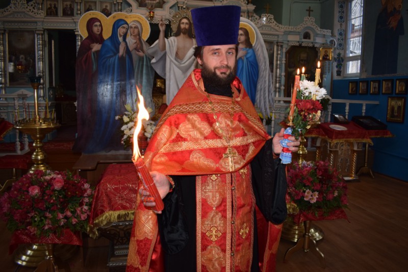 Благодатный огонь, доставленный из Иерусалима, епископ Шахтинский и Миллеровский Симон раздавал духовенству и верующим по окончании пасхальной великой вечерни в Покровском кафедральном соборе г.Шахты.