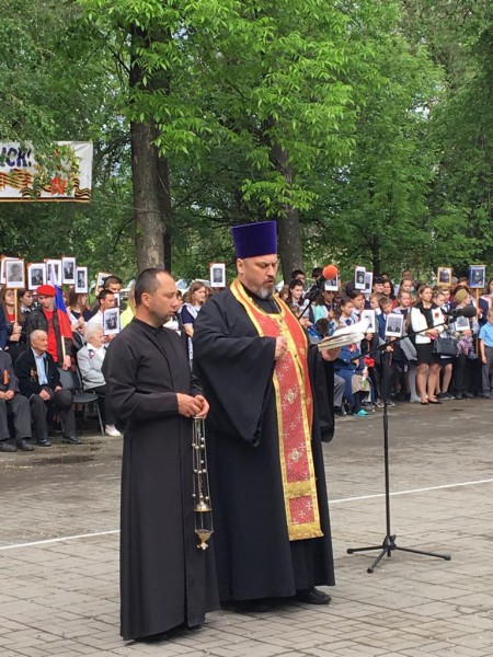 Настоятель храма святителя Тихона Задонского станицы Кривянской протоирей Анатолий Почтовый, принял участие в праздничных мероприятиях посвященных Дню Победы.