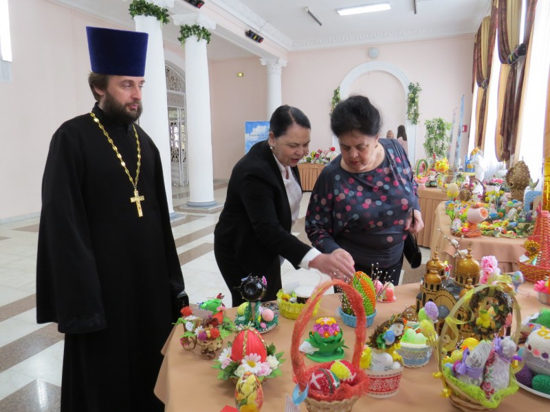 Для приглашённых гостей и участников Пасхальных чтений была организована выставка декоративно-прикладного искусства. Самые творческие педагоги Октябрьского района организовали мастер-классы по изготовлению различных поделок.