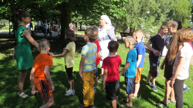 В рамках реализации проекта «Вера. Надежда. Любовь» Всероссийского конкурса лучших волонтерских инициатив «Доброволец России - 2019», сестры Марфо-Мариинского Сестричества храма Архистратига Михаила п. Каменоломни Нижнедонского благочиния с детьми социального приюта для детей и подростков Октябрьского района «Огонек» в День защиты детей организовали и провели игровую программу «Праздник Детства».
