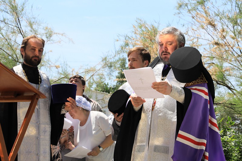 Владыка Симон совершил молитву на освящение, окропил крест и купол, после чего обратился к собравшимся на столь важное событие для прихода и всей станицы.