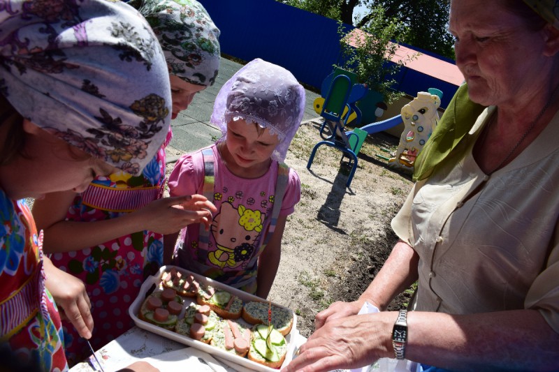 Перед мастер-классом сестры милосердия провели с ребятами беседу о истории слова бутерброд и дали практические кулинарные советы. Из самых простых продуктов с помощью детской фантазии и умения появились необычные канапэ, яблочные лебеди, фруктовая радуга и многое другое.