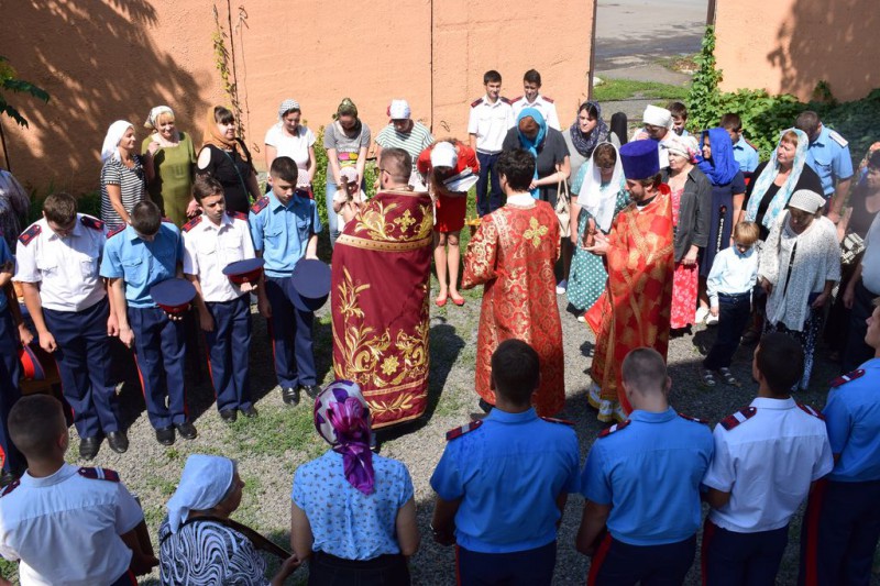 Благочинный поздравил настоятеля храма, преподавателей и учащихся кадетского корпуса, а также прихожан с престольным праздником. Кроме того, протоиерей Сергий поблагодарил директора казачьего кадетского корпуса казачьего полковника Виталия Александровича Бобыльченко за приобретение для храма нового евхаристического набора.
