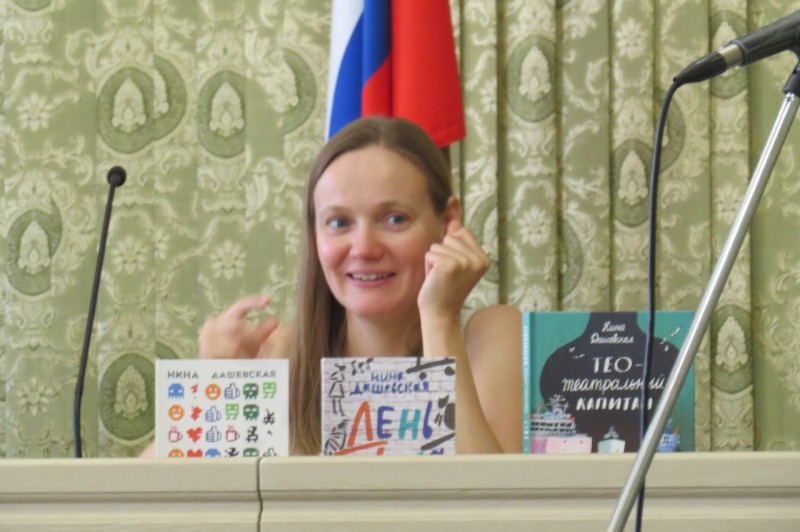 Общаясь с детьми, Нина Дашевская рассказала о своих произведениях: «Тео, театральный капитан» (6+) ,«Я не тормоз» (12+) «День числа Пи» (12+) . Ею были зачитаны отрывки из этих книг. Взрослые и дети с интересом слушали, и задавали интересующие их вопросы писателю. В завершении мероприятия, заместитель главы Администрации Октябрьского района С.А. Уманцева, от имени всех присутствующих поблагодарила детскую писательницу Нину Дашевскую за интересную беседу, пожелала дальнейших творческих успехов, вдохновения и незабываемых встреч с благодарными читателями.