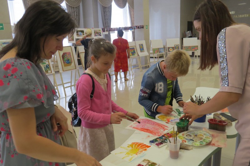 Перед началом мероприятия в фойе центра для детей прошел мастер – класс по аппликации, выставка детских художественных работ и фотовыставка.