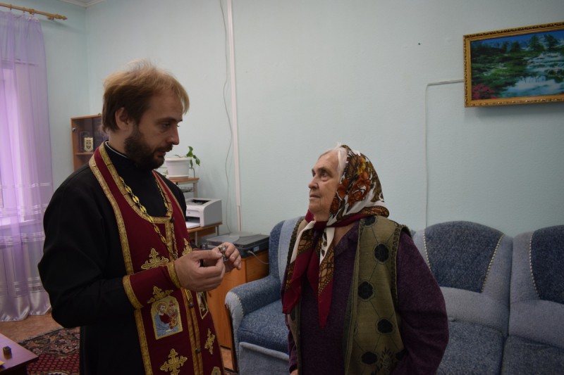 После основных мероприятий «Славим возраст золотой», посвященных Дню пожилого человека, благочинный приходов Нижнедонского округа протоиерей Сергий Яценко по просьбе постояльцев центра совершил водосвятный молебен, обратился к пожилым людям с пастырским словом и подарил каждому святую икону Богородицы.