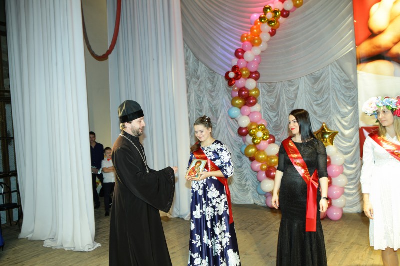 Обращаясь к участницам конкурса со словами поздравления и благопожелания благочинный благословил будущих мам и подарил каждой икону Пресвятой Богородицы.
