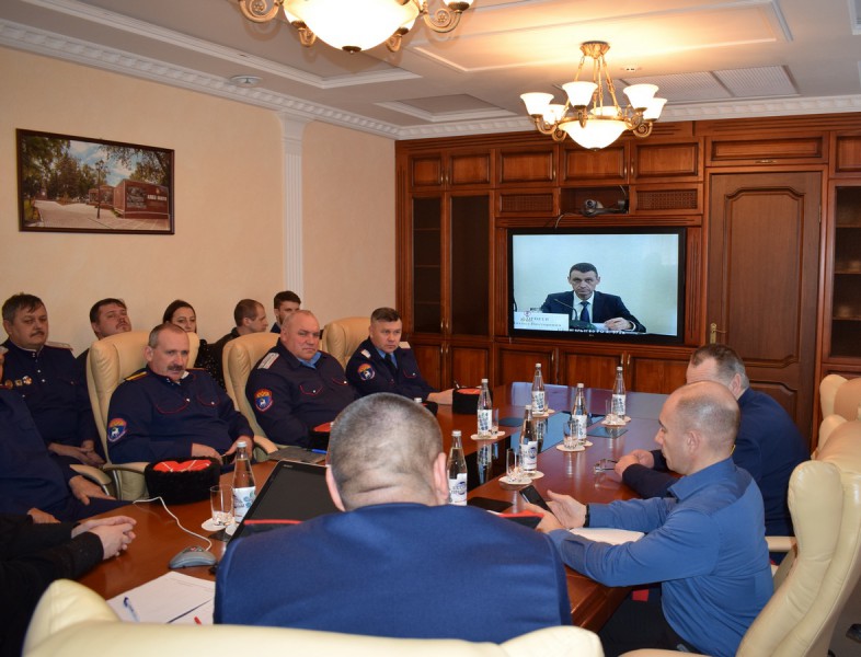 О ходе подготовки к празднованию 450-летия служения казаков государству Российскому и VI Всемирному конгрессу казаков рассказал собравшимся директор областного департамента по делам казачества и кадетских учебных заведений Сергей Бодряков, отметивший, что свыше 1600 мероприятий запланированы к проведению в рамках юбилейного года. Это и фестиваль самобытного казачьего творчества и казачьей культуры, и спортивные состязания, и конференции, и казачьи этнографические экспедиции. Огромный пласт работы предстоит выполнить муниципальным образованиям, и работа на местах уже началась, о чем подробно рассказали в режиме видеоконференцсвязи представители передовых в этом отношении муниципалитетов.