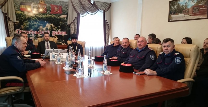От Октябрьского района в мероприятии приняли участие Заместитель главы Администрации Октябрьского района Ушаков Александр Иванович, атаман Нижнедонского Юрта, Глава Администрации Бессергеневского сельского поселения Гудков Анатолий Михайлович, духовник Нижнедонского казачьего Юрта, благочинный приходов Нижнедонского округа протоиерей Сергий Яценко, атаманы и казаки Юрта.