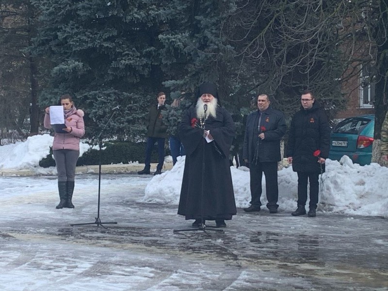 С пастырским словом к участником мероприятия обратился иеромонах Николай (Наметышев), который напонил, что в тяжелые годы Великой Отечественной войны наш народ явил силу духа и стойкость, проявил веру, героизм и самоотверженность и смог сокрушить страшного врага, отстояв независимость родной страны.