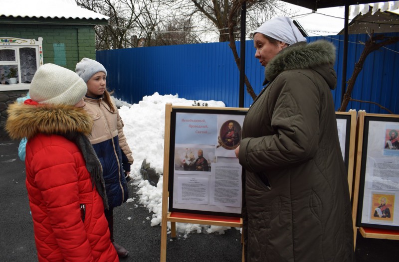 По благословению благочинного приходов Нижнедонского округа протоиерея Сергия Яценко, в рамках просветительского проекта «И пусть поколения знают» в храме Архангела Михаила п. Каменоломни Октябрьского района была организована выставка «Непобедимый, праведный, святой». Она была посвящена святому праведному войну Федору Ушакову.
