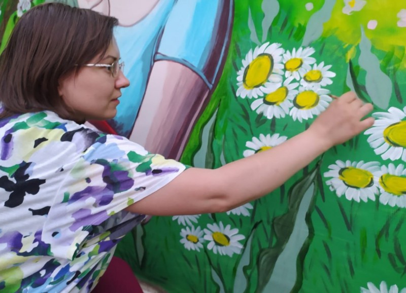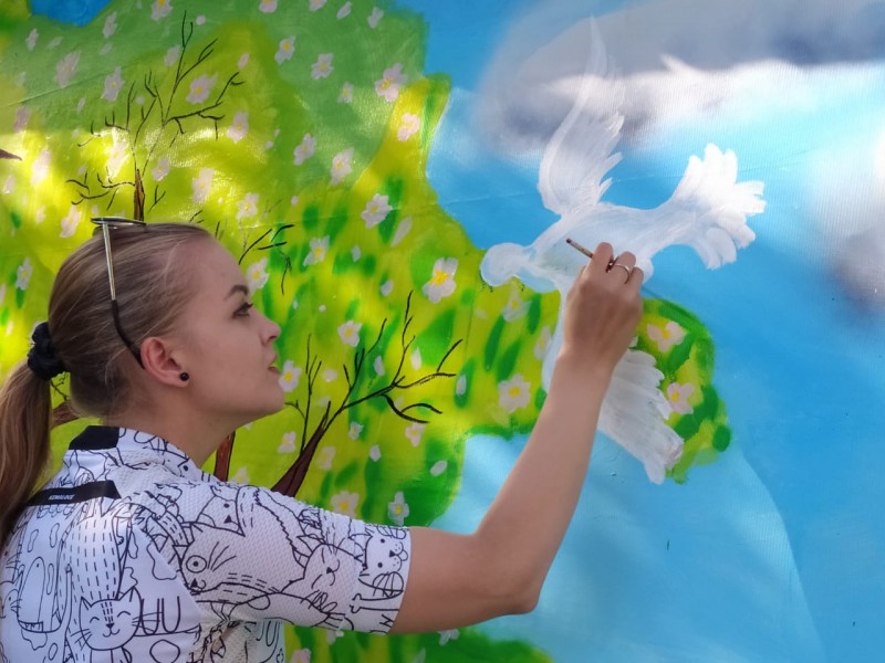 Роспись стены граффити-художниками – часть участия представителей Октябрьского района во Всероссийском фестивале граффити, приуроченном ко Дню России.