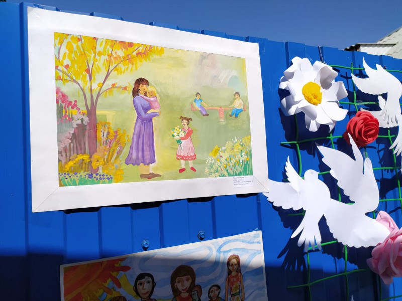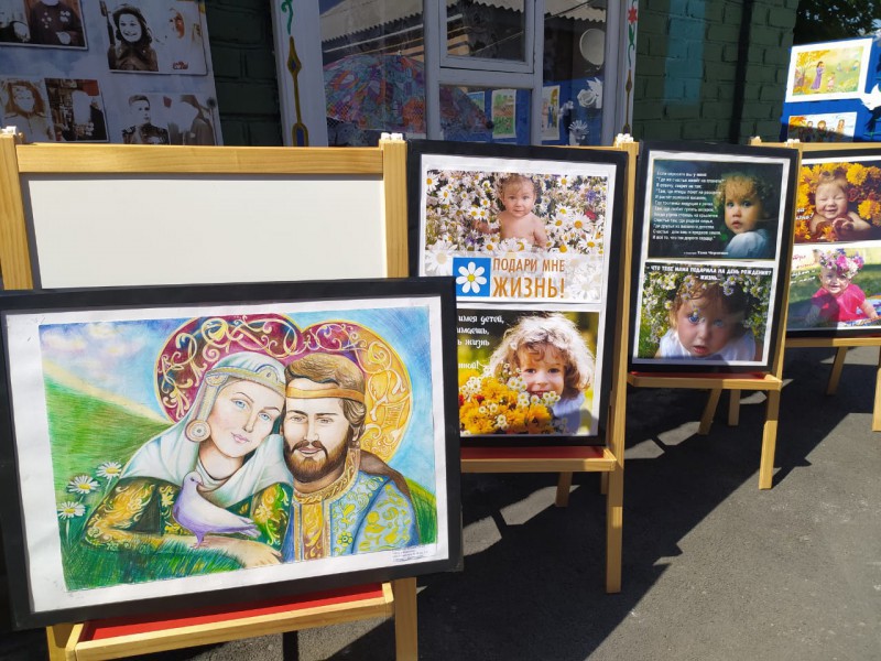 - Выставка детских рисунков "День Семьи, Любви и Верности", украшенная символом праздника, белыми ромашками.