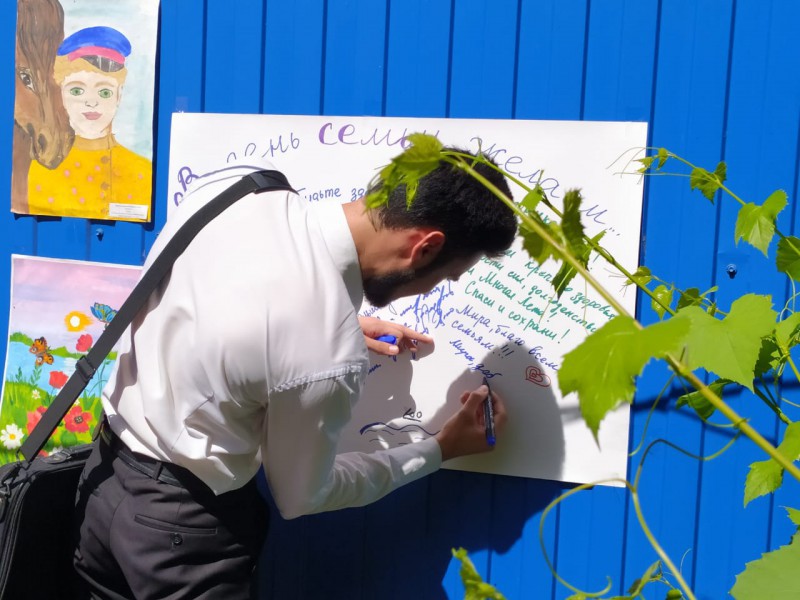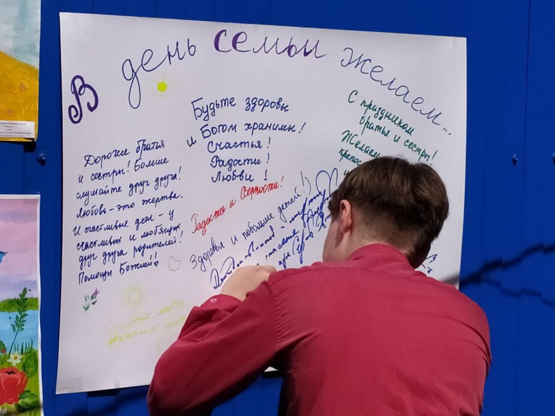 Настоятель храма протоиерей Сергий Яценко поздравил молодые семьи и тех кто прожил в браке многие годы с праздником, каждый желающий смог выбрать из "мешочка добрых пожеланий" высказывания святых о семье и браке. На заранее приготовленном ватмане молодые прихожане оставили свои пожелания всем участникам встречи.