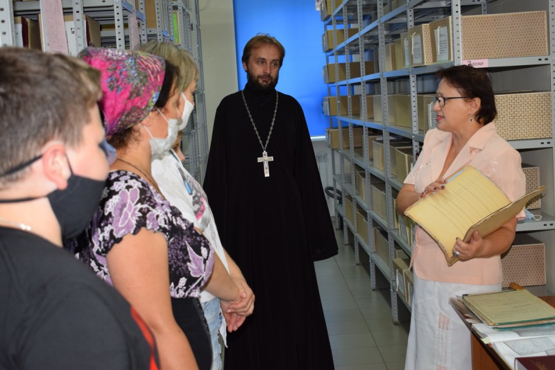 В завершении встречи, сестры Марфо-Мариинского Сестричества, родители православного семейного клуба «Верность» и воскресной школы «Благовест» храма Архангела Михаила п. Каменоломни, принявшие активное участие в организации встречи, от лица ребят выразили слова благодарности заведующей архивным сектором Октябрьского района, Елене Ивановне за интересную экскурсию.