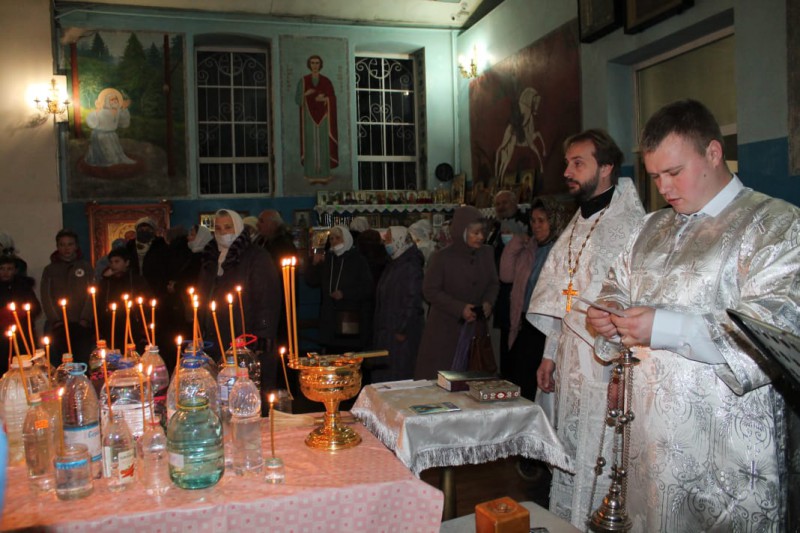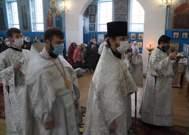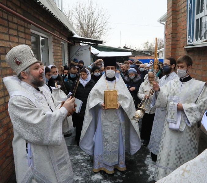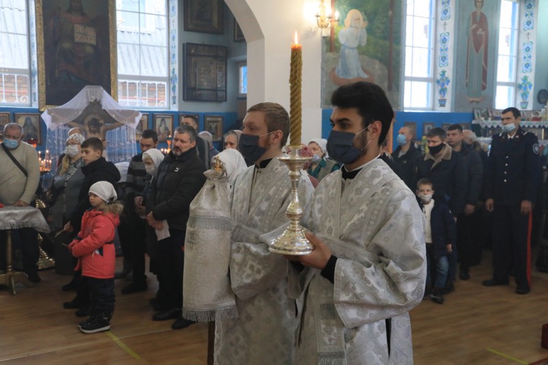 Его Преосвященству сослужили благочинный приходов Нижнедонского церковного округа, настоятель храма протоиерей Сергий Яценко; клирик храма Архистратига Михаила иерей Виталий Крендясов, настоятель храма великомученика Георгия Победоносца пос. Новозарянский иерей Сергий Липень, диакон Даниил Зырянов и диакон Трофим Осяк.