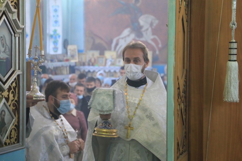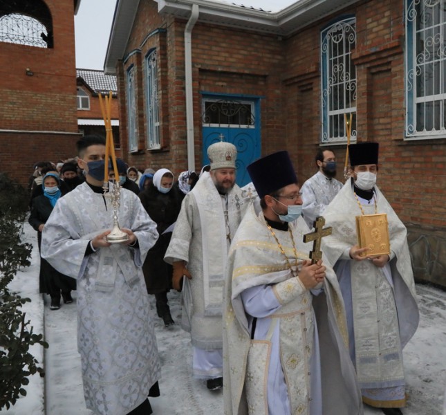 По завершении Литургии духовенство и прихожане во главе с архипастырем прошли крестным ходом, прославляя небесного покровителя храма Архистратига Божия Михаила.
