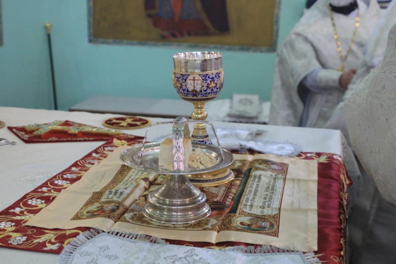 Песнопения Божественной литургии исполнил хор под управлением Анастасии Логвиновой.