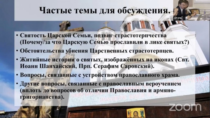 Организаторами Форума выступили Патриарший совет по культуре, Фонд содействия сохранению христианских ценностей, исторический парк «Россия – моя история». В режиме видеоконференции прошли круглые столы, посвященные темам: катехизаторская работа светского человека на духовных объектах культурного наследия, опыт катехизаторской работы на примере исторических памятников (Екатеринбург, Сергиево-Посадский музей-заповедник, Троице-Сергиева Лавра, Новгородский музей -заповедник), особенности миссионерской деятельности и др.