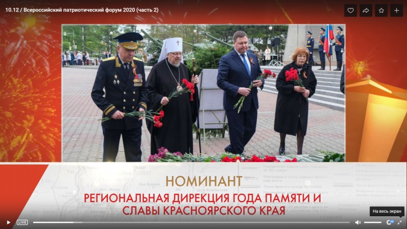 С 9 по 11 декабря 2020 года в Музее Победы состоялся Всероссийский патриотический форум, на котором представители органов государственной власти, общественных организаций, научного сообщества обсудили актуальные вопросы формирования патриотического мировоззрения в современном российском обществе. Форум прошел в онлайн формате. В нем приняли участие более 3 тысяч человек из 85 регионов.