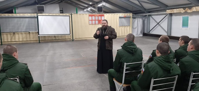 В преддверии великого праздника Рождества Христова настоятель храма святителя Тихона Задонского ст. Кривянской протоиерей Константин Федосеев посетил военнослужащих 102-го мотострелкового полка в составе 150-й дивизии.