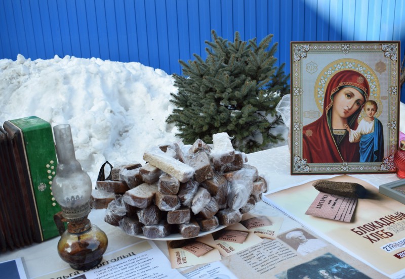 Сестры Марфо-Мариинского Сестричества и молодежь православного семейного клуба «Верность» при поддержке педагогов и родителей воскресной школы «Благовест» организовали памятную выставку старинных вещей и подготовили рассказ для детей и взрослых о блокаде Ленинграда.