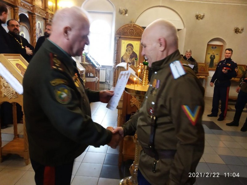 В преддверии праздника День защитника Отечества в храме в честь Донской иконы Божьей Матери г. Новошахтинска состоялась традиционная встреча казаков станицы Мало-Несветаевская Черкасского округа Международного союза общественных объединений «Всевеликое войско Донское».
