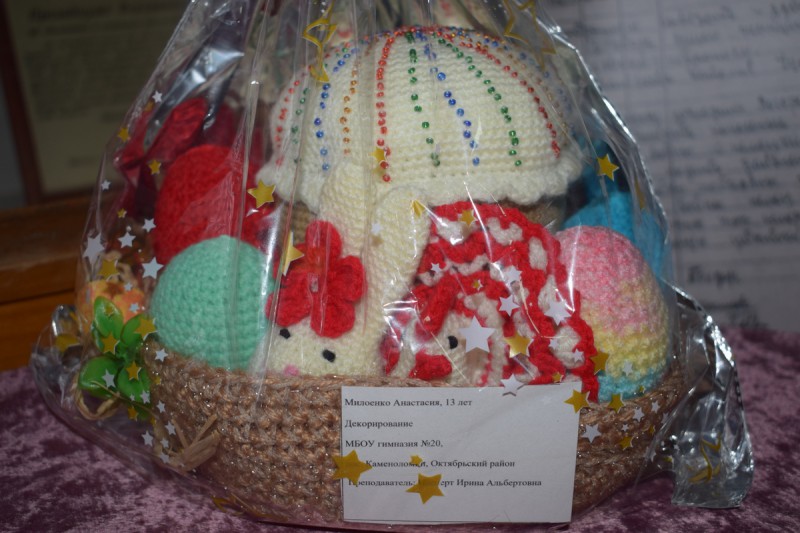 В номинации «Фантазия» – пасхальные яйца, выполненные в технике: макраме, вязание, лоскутная техника.