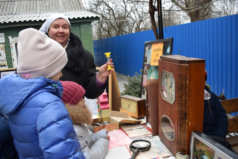 По благословению благочинного приходов Нижнедонского округа протоиерея Сергия Яценко, в храме Архистратига Михаила п. Каменоломни Октябрьского района, для детей младшей и средней возрастных групп церковно-приходской воскресной школы «Благовест» сестрами Марфо-Мариинского Сестричества и преподавателями школы в рамках цикла занятий «Наука и Вера» был подготовлен исторический материал, содержащий доводы авторитетных представителей науки о вере, и организована тематическая экскурсия на тему «Путешествие в прошлое часов».