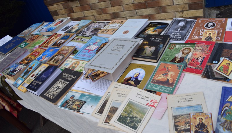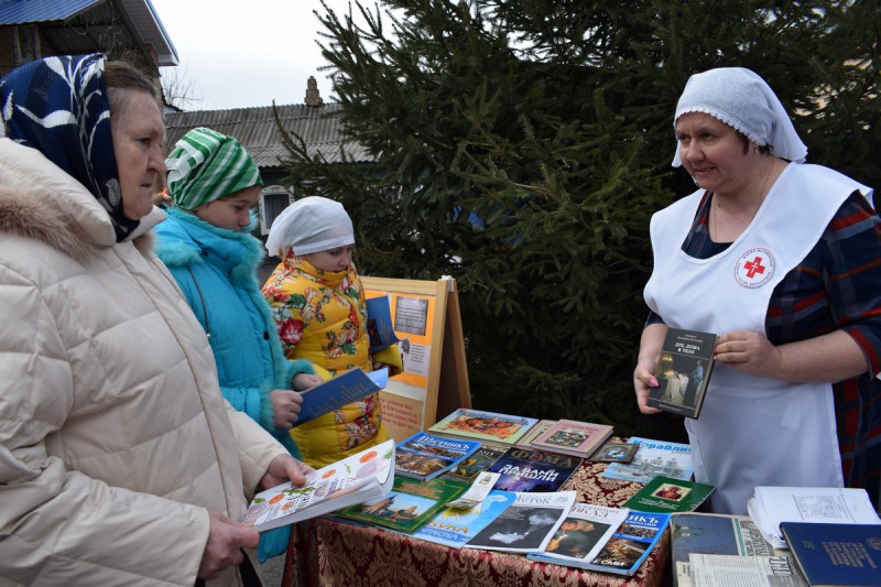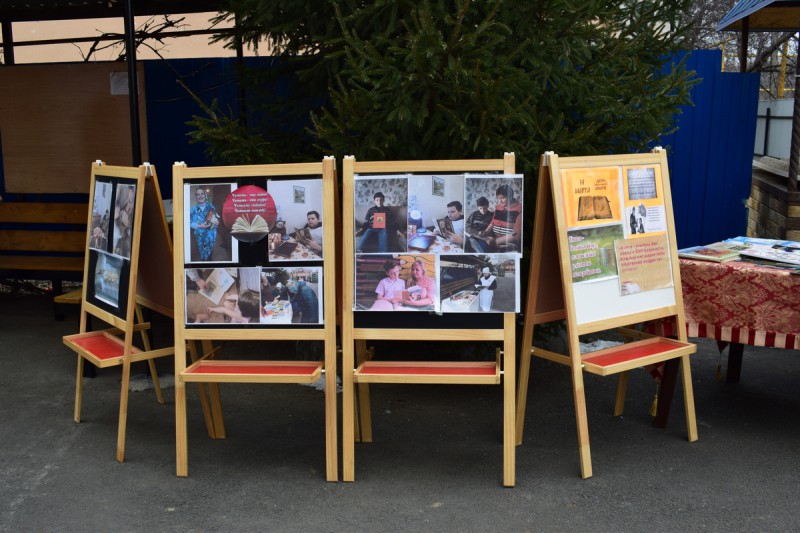 По благословению благочинного приходов Нижнедонского округа протоиерея Сергия Яценко, сестрами Марфо-Мариинского Сестричества, педагогами воскресной школы «Благовест» и молодежным активом семейного клуба «Верность» на территории храма Архистратига Михаила п. Каменоломни Октябрьского района прошла тематическая выставка посвященная «Дню православной книги» с раздачей литературы.