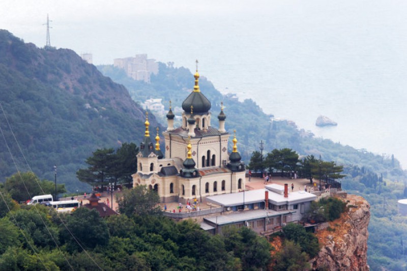 Храм Вознесения Христова в Форосе уникален по своему расположению — он возведен на отвес¬ной скале и обращен алтарем не на восток, а в сторону моря — особенность, присущая только южнобережным храмам. Со стороны моря церковь ярко выделяется на фоне скал и служит маяком для морских путешественников. Удивительна и история храма. Он был построен в память о чудесном спасении Александра III и его семьи. 17 октября 1888 года поезд, в котором ехала императорская семья, сошел с рельсов, но Александру удалось удержать обваливавшуюся крышу вагона так, что все успели выбраться. В 30-е годы XX века церковь была разграб¬лена, а во время Великой Отечественной войны служила убежищем для пограничников и находилась под обстрелом фашистов. После войны в храме был ресторан: его закрыли в 1960-е годы после того, как шах Ирана, путешествовавший по Крыму в сопровождении Н. С. Хрущева, отказался войти в него, посчитав это кощунством. После этого церковь использовалась как склад до тех пор, пока там не произошел пожар. Храм забросили окончательно и вернули Православной Церкви только в 1990 году, а в 2004 году он был полностью восстановлен и открыт для посещения.
