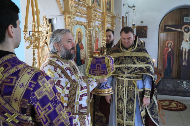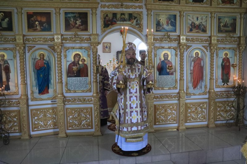 Его Преосвященству сослужили настоятель храма протоиерей Николай Филимонов и диакон Трофим Осяк.