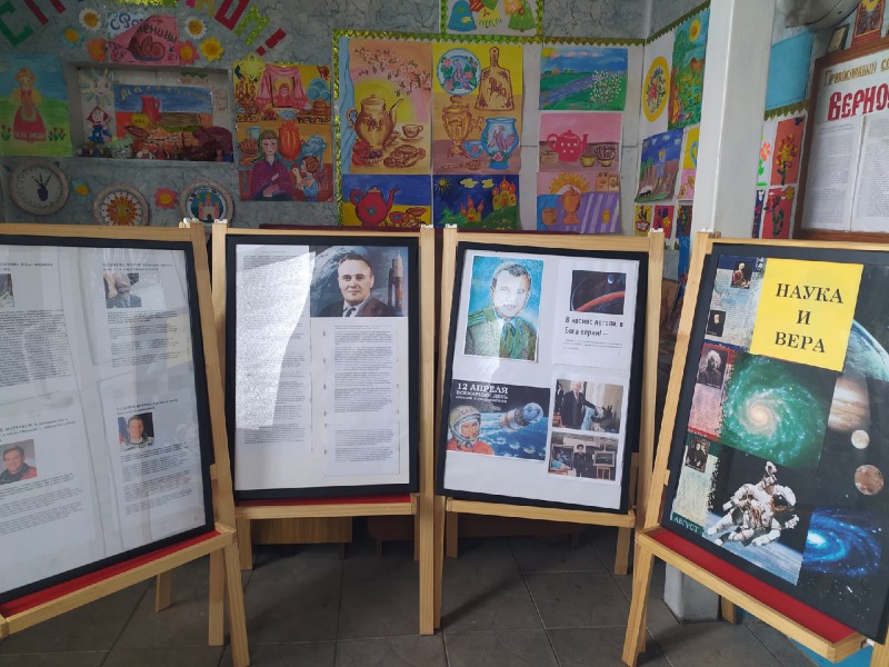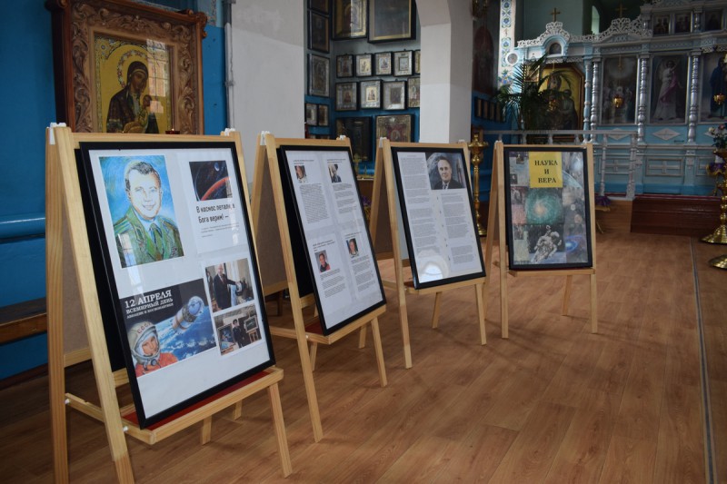 По благословению благочинного приходов Нижнедонского округа протоиерея Сергия Яценко сестрами милосердия Марфо-Мариинского Сестричества, молодежным активом семейного клуба «Верность» и преподавателями воскресной школы «Благовест» храма Архистратига Михаила п. Каменоломни Октябрьского района для детей и взрослых была организована выставка и подготовлен чикл тематических бесед в рамках основных мероприятий по проведению Года науки и технологий, о православном взгляде на познание космоса, жизни и деятельности, знаменитых космонавтах внесших значительный вклад в развитие космонавтики.