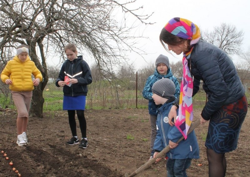 В храме Архистратига Михаила п. Каменоломни воспитанниками церковно-приходской воскресной школы «Благовест» совместно с преподавателями и родителями была произведена посадка огорода на прилегающем к храму участке. Ребята с большим увлечением и интересом высадили зелень и разнообразные овощные культуры.
