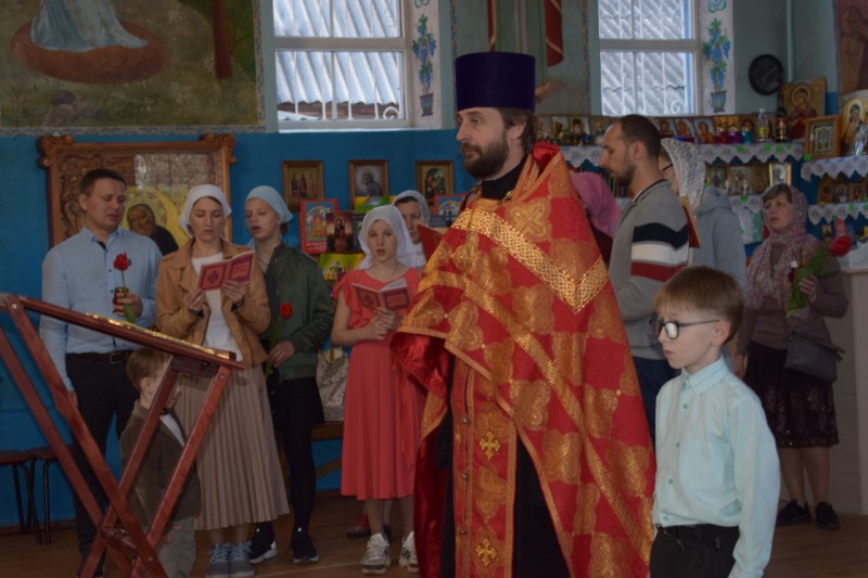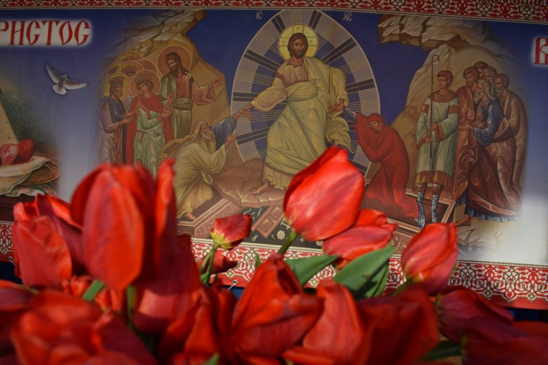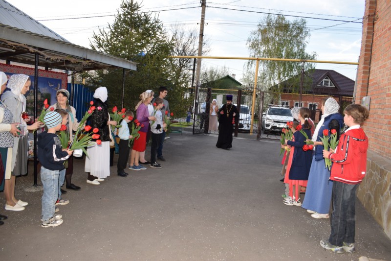 По благословению епископа Шахтинского и Миллеровского Симона, благочинный приходов Нижнедонского округа протоиерей Сергий Яценко в день Светлого Христова Воскресения - Пасхи Господней, доставил Священный огонь в храм Архангела Михаила пос. Каменоломни, где его торжественно встречали местные жители по сложившейся традиции с живыми цветами в руках.