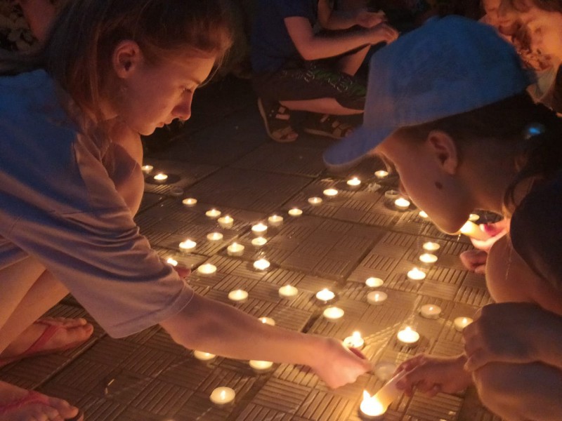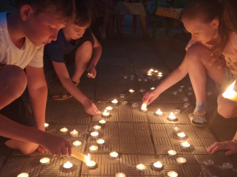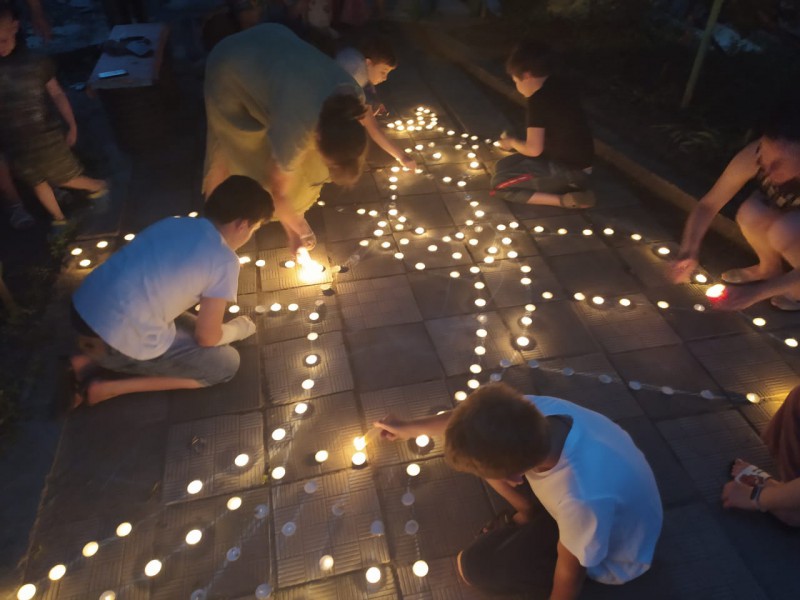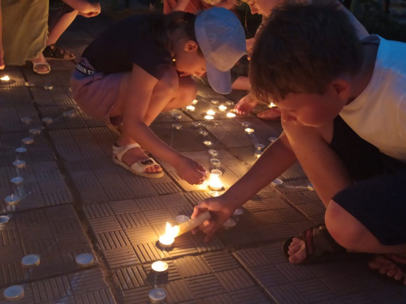 По благословению благочинного приходов Нижнедонского округа протоиерея Сергия Яценко с целью патриотического воспитания и сохранения исторической памяти, дети прихода храма Архистратига Михаила п. Каменоломни Октябрьского района при поддержке взрослых в память воспоминаемого события, выложили из свечей "голубя мира".